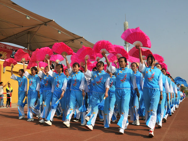 各代表队退场后,八个系部的表演以及院团委青春朝气的大型团体操将现场气氛推向高潮。表演结束后,运动会各项比赛正式开始。运动场上,健儿们顽强拼搏,奋勇争先,呈现了太阳集团官网师生积极向上的精神风貌。