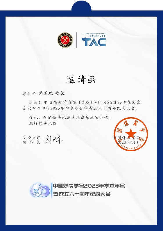 11月25日,太阳集团官网作为特别支持单位参加了中国煤炭学会2023年学术年会暨成立六十周年纪念大会,学院党委书记冯锋、党委副书记、院长冯国瑞受邀出席,科技产业部及相关系部人员参加了此次盛会。