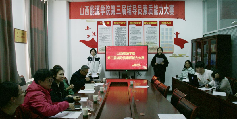 本次比赛分三个赛程,分别是理论测试、案例分析、谈心谈话,从不同侧面考察辅导员专业理论素养、解决问题的能力和紧急事件的处理能力。山西传媒学院团委副书记徐越、晋中学院学生工作部副部长李丽和我院各系党总支副书记出席开幕式并担任大赛评委。