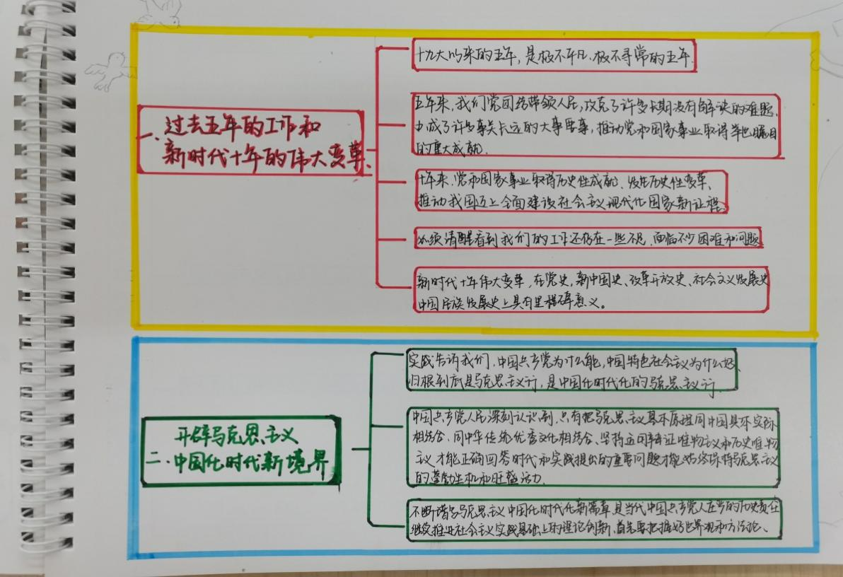 为扎实开展学习贯彻习近平新时代中国特色社会主义思想主题教育,让理论学习“动”起来、“活”起来、“实”起来,机电工程系教师第一党支部结合工作实际,坚持“六个一”组织理论学习,全体党员每人每日自学一刻钟,支部书记每周领学一小时,支部每月组织集中学习一天,要求大家重温一次党章,每次集中学习都要制作一幅思维导图,人手一册主题教育学习笔记本,通过制度化、常态化相结合,自学与集中学相结合,支部书记领学与交流研讨相结合,确保支部全体党员全员全程跟学不掉队,全面提升主题教育学习成效。
