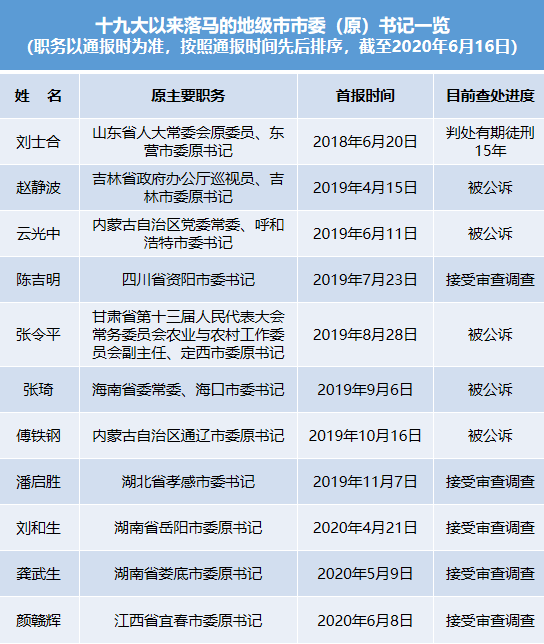 据统计,包括颜赣辉在内,党的十九大以来,至少已有11名地级市原市委书记落马(具体名单详见下表)。