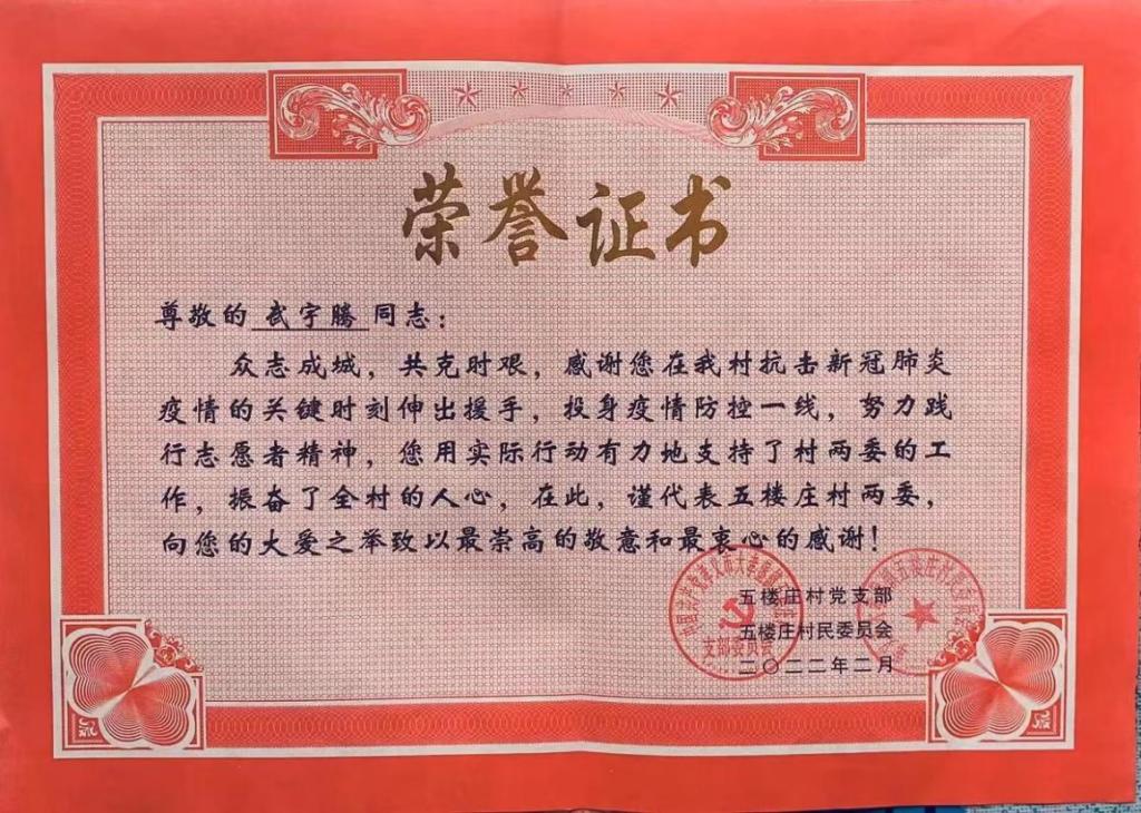 在疫情态势最为严重时,我系学生党员和入党积极分子纷纷主动加入各级单位成立的疫情防控小组,积极参与疫情防控工作。与工作人员轮流在驻点值班,为出入人员测量体温、发放宣传资料、讲解有关新型冠状病毒的知识和预防传染的方法。学生党员武宇腾同学拿出自己的奖学金为工作人员送来水,方便面,八宝粥等物资,支持着疫情防控与灾后重建的工作。